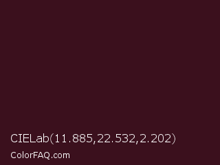 CIELab 11.885,22.532,2.202 Color is a very dark rose color and the nearest color is Dark Sienna #3c1414. Hex code #3b101d and RGB value is rgb(59,16,29). In RGB color space, this color is composed of 23% red, 6% green, 11% blue, In CMYK color space, this color is composed of 0% cyan, 73% magenta, 51% yellow , 77% black , In HSL color space, this color has a hue angle of 342° , 57% saturation and 15% lightness.