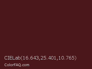 CIELab 16.643,25.401,10.765 Color is a very dark red color and the nearest color is Cocoa Bean #481c1c. Hex code #4c171b and RGB value is rgb(76,23,27). In RGB color space, this color is composed of 30% red, 9% green, 11% blue, In CMYK color space, this color is composed of 0% cyan, 70% magenta, 64% yellow , 70% black , In HSL color space, this color has a hue angle of 355° , 54% saturation and 19% lightness.