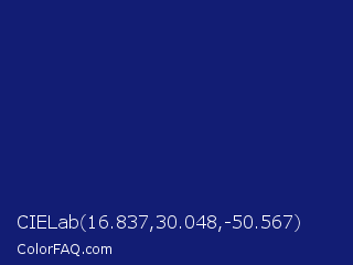 CIELab 16.837,30.048,-50.567 Color is a dark blue color and the nearest color is Midnight Blue #191970. Hex code #121d74 and RGB value is rgb(18,29,116). In RGB color space, this color is composed of 7% red, 11% green, 45% blue, In CMYK color space, this color is composed of 84% cyan, 75% magenta, 0% yellow , 55% black , In HSL color space, this color has a hue angle of 233° , 73% saturation and 26% lightness.