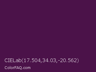 CIELab 17.504,34.03,-20.562 Color is a very dark magenta color and the nearest color is Loulou #460b41. Hex code #4b1249 and RGB value is rgb(75,18,73). In RGB color space, this color is composed of 29% red, 7% green, 29% blue, In CMYK color space, this color is composed of 0% cyan, 76% magenta, 3% yellow , 71% black , In HSL color space, this color has a hue angle of 302° , 61% saturation and 18% lightness.