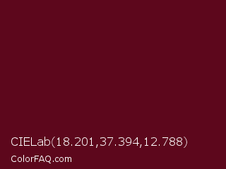CIELab 18.201,37.394,12.788 Color is a very dark red color and the nearest color is Bordeaux #5c0120. Hex code #5d071c and RGB value is rgb(93,7,28). In RGB color space, this color is composed of 36% red, 3% green, 11% blue, In CMYK color space, this color is composed of 0% cyan, 92% magenta, 70% yellow , 64% black , In HSL color space, this color has a hue angle of 345° , 86% saturation and 20% lightness.
