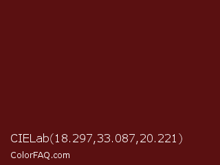 CIELab 18.297,33.087,20.221 Color is a very dark red color and the nearest color is Heath #541012. Hex code #5a1011 and RGB value is rgb(90,16,17). In RGB color space, this color is composed of 35% red, 6% green, 7% blue, In CMYK color space, this color is composed of 0% cyan, 82% magenta, 81% yellow , 65% black , In HSL color space, this color has a hue angle of 359° , 70% saturation and 21% lightness.