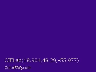 CIELab 18.904,48.29,-55.977 Color is a dark violet color and the nearest color is Kingfisher Daisy #3e0480. Hex code #3c0782 and RGB value is rgb(60,7,130). In RGB color space, this color is composed of 24% red, 3% green, 51% blue, In CMYK color space, this color is composed of 54% cyan, 95% magenta, 0% yellow , 49% black , In HSL color space, this color has a hue angle of 266° , 90% saturation and 27% lightness.