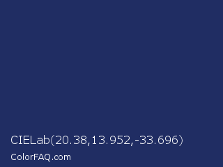 CIELab 20.38,13.952,-33.696 Color is a dark blue color and the nearest color is Biscay #1b3162. Hex code #202d63 and RGB value is rgb(32,45,99). In RGB color space, this color is composed of 13% red, 18% green, 39% blue, In CMYK color space, this color is composed of 68% cyan, 55% magenta, 0% yellow , 61% black , In HSL color space, this color has a hue angle of 228° , 51% saturation and 26% lightness.