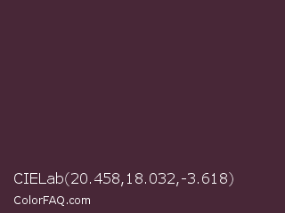 CIELab 20.458,18.032,-3.618 Color is a very dark rose color and the nearest color is Livid Brown #4d282e. Hex code #482737 and RGB value is rgb(72,39,55). In RGB color space, this color is composed of 28% red, 15% green, 22% blue, In CMYK color space, this color is composed of 0% cyan, 46% magenta, 24% yellow , 72% black , In HSL color space, this color has a hue angle of 331° , 30% saturation and 22% lightness.