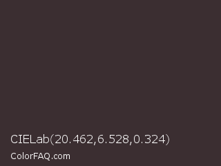 CIELab 20.462,6.528,0.324 Color is a very dark red color and the nearest color is Dune #383533. Hex code #3b2e31 and RGB value is rgb(59,46,49). In RGB color space, this color is composed of 23% red, 18% green, 19% blue, In CMYK color space, this color is composed of 0% cyan, 22% magenta, 17% yellow , 77% black , In HSL color space, this color has a hue angle of 346° , 12% saturation and 21% lightness.