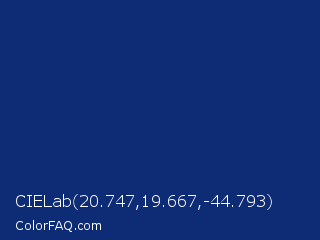CIELab 20.747,19.667,-44.793 Color is a dark blue color and the nearest color is Catalina Blue #062a78. Hex code #0e2c75 and RGB value is rgb(14,44,117). In RGB color space, this color is composed of 5% red, 17% green, 46% blue, In CMYK color space, this color is composed of 88% cyan, 62% magenta, 0% yellow , 54% black , In HSL color space, this color has a hue angle of 223° , 79% saturation and 26% lightness.