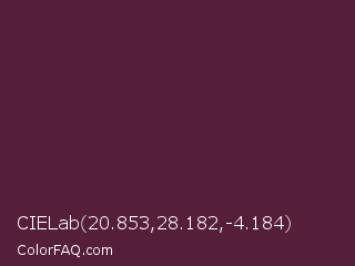 CIELab 20.853,28.182,-4.184 Color is a dark rose color and the nearest color is Wine Berry #591d35. Hex code #551f39 and RGB value is rgb(85,31,57). In RGB color space, this color is composed of 33% red, 12% green, 22% blue, In CMYK color space, this color is composed of 0% cyan, 64% magenta, 33% yellow , 67% black , In HSL color space, this color has a hue angle of 331° , 47% saturation and 23% lightness.