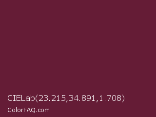 CIELab 23.215,34.891,1.708 Color is a dark rose color and the nearest color is Wine Berry #591d35. Hex code #651c36 and RGB value is rgb(101,28,54). In RGB color space, this color is composed of 40% red, 11% green, 21% blue, In CMYK color space, this color is composed of 0% cyan, 72% magenta, 47% yellow , 60% black , In HSL color space, this color has a hue angle of 339° , 57% saturation and 25% lightness.