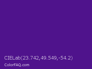 CIELab 23.742,49.549,-54.2 Color is a normal violet color and the nearest color is Daisy Bush #4f2398. Hex code #4f138c and RGB value is rgb(79,19,140). In RGB color space, this color is composed of 31% red, 7% green, 55% blue, In CMYK color space, this color is composed of 44% cyan, 86% magenta, 0% yellow , 45% black , In HSL color space, this color has a hue angle of 270° , 76% saturation and 31% lightness.