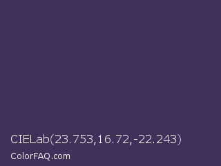 CIELab 23.753,16.72,-22.243 Color is a dark violet color and the nearest color is Martinique #363050. Hex code #40315a and RGB value is rgb(64,49,90). In RGB color space, this color is composed of 25% red, 19% green, 35% blue, In CMYK color space, this color is composed of 29% cyan, 46% magenta, 0% yellow , 65% black , In HSL color space, this color has a hue angle of 262° , 29% saturation and 27% lightness.