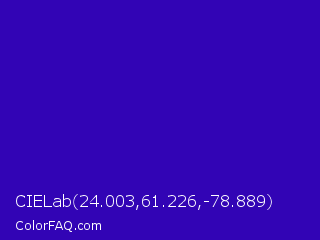 CIELab 24.003,61.226,-78.889 Color is a normal indigo color and the nearest color is Interdimensional Blue #360ccc. Hex code #3204b5 and RGB value is rgb(50,4,181). In RGB color space, this color is composed of 20% red, 2% green, 71% blue, In CMYK color space, this color is composed of 72% cyan, 98% magenta, 0% yellow , 29% black , In HSL color space, this color has a hue angle of 256° , 96% saturation and 36% lightness.