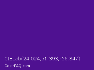 CIELab 24.024,51.393,-56.847 Color is a normal violet color and the nearest color is Daisy Bush #4f2398. Hex code #4f1191 and RGB value is rgb(79,17,145). In RGB color space, this color is composed of 31% red, 7% green, 57% blue, In CMYK color space, this color is composed of 46% cyan, 88% magenta, 0% yellow , 43% black , In HSL color space, this color has a hue angle of 269° , 79% saturation and 32% lightness.