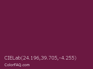 CIELab 24.196,39.705,-4.255 Color is a dark rose color and the nearest color is Tawny Port #692545. Hex code #6b1841 and RGB value is rgb(107,24,65). In RGB color space, this color is composed of 42% red, 9% green, 25% blue, In CMYK color space, this color is composed of 0% cyan, 78% magenta, 39% yellow , 58% black , In HSL color space, this color has a hue angle of 330° , 63% saturation and 26% lightness.