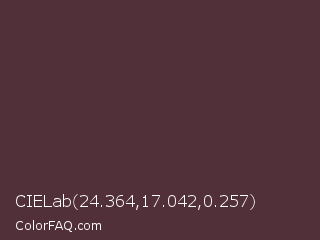 CIELab 24.364,17.042,0.257 Color is a dark rose color and the nearest color is Congo Brown #593737. Hex code #52303a and RGB value is rgb(82,48,58). In RGB color space, this color is composed of 32% red, 19% green, 23% blue, In CMYK color space, this color is composed of 0% cyan, 41% magenta, 29% yellow , 68% black , In HSL color space, this color has a hue angle of 342° , 26% saturation and 25% lightness.