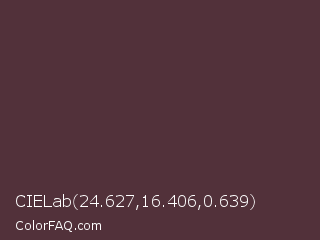 CIELab 24.627,16.406,0.639 Color is a dark rose color and the nearest color is Congo Brown #593737. Hex code #52313a and RGB value is rgb(82,49,58). In RGB color space, this color is composed of 32% red, 19% green, 23% blue, In CMYK color space, this color is composed of 0% cyan, 40% magenta, 29% yellow , 68% black , In HSL color space, this color has a hue angle of 344° , 25% saturation and 26% lightness.