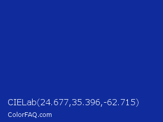 CIELab 24.677,35.396,-62.715 Color is a normal blue color and the nearest color is Torea Bay #0f2d9e. Hex code #102c9c and RGB value is rgb(16,44,156). In RGB color space, this color is composed of 6% red, 17% green, 61% blue, In CMYK color space, this color is composed of 90% cyan, 72% magenta, 0% yellow , 39% black , In HSL color space, this color has a hue angle of 228° , 81% saturation and 34% lightness.