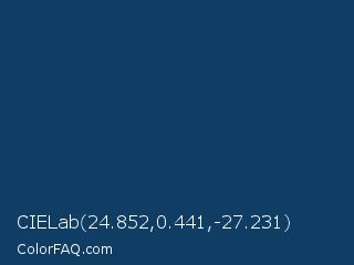 CIELab 24.852,0.441,-27.231 Color is a dark blue color and the nearest color is Astronaut Blue #013e62. Hex code #103d64 and RGB value is rgb(16,61,100). In RGB color space, this color is composed of 6% red, 24% green, 39% blue, In CMYK color space, this color is composed of 84% cyan, 39% magenta, 0% yellow , 61% black , In HSL color space, this color has a hue angle of 208° , 72% saturation and 23% lightness.