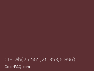 CIELab 25.561,21.353,6.896 Color is a dark red color and the nearest color is Buccaneer #622f30. Hex code #5d2f33 and RGB value is rgb(93,47,51). In RGB color space, this color is composed of 36% red, 18% green, 20% blue, In CMYK color space, this color is composed of 0% cyan, 49% magenta, 45% yellow , 64% black , In HSL color space, this color has a hue angle of 355° , 33% saturation and 27% lightness.