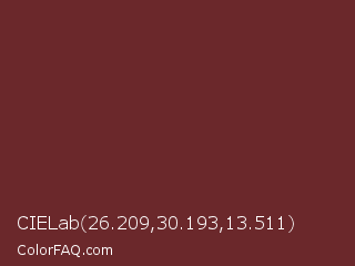 CIELab 26.209,30.193,13.511 Color is a dark red color and the nearest color is Buccaneer #622f30. Hex code #6b282b and RGB value is rgb(107,40,43). In RGB color space, this color is composed of 42% red, 16% green, 17% blue, In CMYK color space, this color is composed of 0% cyan, 63% magenta, 60% yellow , 58% black , In HSL color space, this color has a hue angle of 357° , 46% saturation and 29% lightness.