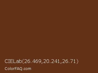 CIELab 26.469,20.241,26.71 Color is a dark orange color and the nearest color is Jambalaya #5b3013. Hex code #633116 and RGB value is rgb(99,49,22). In RGB color space, this color is composed of 39% red, 19% green, 9% blue, In CMYK color space, this color is composed of 0% cyan, 51% magenta, 78% yellow , 61% black , In HSL color space, this color has a hue angle of 21° , 64% saturation and 24% lightness.