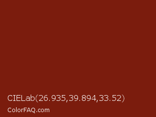 CIELab 26.935,39.894,33.52 Color is a dark red color and the nearest color is Kenyan Copper #7c1c05. Hex code #7b1c0d and RGB value is rgb(123,28,13). In RGB color space, this color is composed of 48% red, 11% green, 5% blue, In CMYK color space, this color is composed of 0% cyan, 77% magenta, 89% yellow , 52% black , In HSL color space, this color has a hue angle of 8° , 81% saturation and 27% lightness.