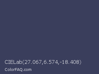 CIELab 27.067,6.574,-18.408 Color is a dark blue color and the nearest color is Gun Powder #414257. Hex code #3a3e5c and RGB value is rgb(58,62,92). In RGB color space, this color is composed of 23% red, 24% green, 36% blue, In CMYK color space, this color is composed of 37% cyan, 33% magenta, 0% yellow , 64% black , In HSL color space, this color has a hue angle of 233° , 23% saturation and 29% lightness.