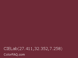 CIELab 27.411,32.352,7.258 Color is a dark red color and the nearest color is Wine #722f37. Hex code #6f2937 and RGB value is rgb(111,41,55). In RGB color space, this color is composed of 44% red, 16% green, 22% blue, In CMYK color space, this color is composed of 0% cyan, 63% magenta, 50% yellow , 56% black , In HSL color space, this color has a hue angle of 348° , 46% saturation and 30% lightness.