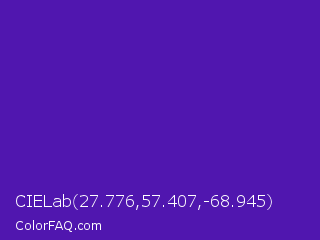 CIELab 27.776,57.407,-68.945 Color is a normal violet color and the nearest color is Daisy Bush #4f2398. Hex code #5016af and RGB value is rgb(80,22,175). In RGB color space, this color is composed of 31% red, 9% green, 69% blue, In CMYK color space, this color is composed of 54% cyan, 87% magenta, 0% yellow , 31% black , In HSL color space, this color has a hue angle of 263° , 78% saturation and 39% lightness.