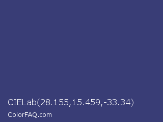 CIELab 28.155,15.459,-33.34 Color is a normal blue color and the nearest color is Minsk #3f307f. Hex code #393d76 and RGB value is rgb(57,61,118). In RGB color space, this color is composed of 22% red, 24% green, 46% blue, In CMYK color space, this color is composed of 52% cyan, 48% magenta, 0% yellow , 54% black , In HSL color space, this color has a hue angle of 236° , 35% saturation and 34% lightness.