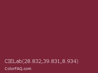 CIELab 28.832,39.831,8.934 Color is a normal red color and the nearest color is Claret #7f1734. Hex code #7c2338 and RGB value is rgb(124,35,56). In RGB color space, this color is composed of 49% red, 14% green, 22% blue, In CMYK color space, this color is composed of 0% cyan, 72% magenta, 55% yellow , 51% black , In HSL color space, this color has a hue angle of 346° , 56% saturation and 31% lightness.