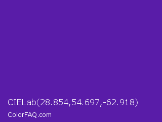 CIELab 28.854,54.697,-62.918 Color is a normal violet color and the nearest color is Daisy Bush #4f2398. Hex code #591ca8 and RGB value is rgb(89,28,168). In RGB color space, this color is composed of 35% red, 11% green, 66% blue, In CMYK color space, this color is composed of 47% cyan, 83% magenta, 0% yellow , 34% black , In HSL color space, this color has a hue angle of 266° , 71% saturation and 38% lightness.