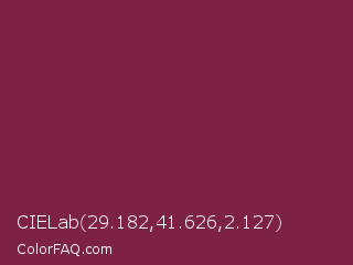 CIELab 29.182,41.626,2.127 Color is a normal rose color and the nearest color is Pansy Purple #78184a. Hex code #7d2243 and RGB value is rgb(125,34,67). In RGB color space, this color is composed of 49% red, 13% green, 26% blue, In CMYK color space, this color is composed of 0% cyan, 73% magenta, 46% yellow , 51% black , In HSL color space, this color has a hue angle of 338° , 57% saturation and 31% lightness.