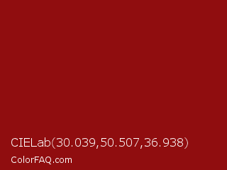 CIELab 30.039,50.507,36.938 Color is a normal red color and the nearest color is Tamarillo #991613. Hex code #900d0f and RGB value is rgb(144,13,15). In RGB color space, this color is composed of 56% red, 5% green, 6% blue, In CMYK color space, this color is composed of 0% cyan, 91% magenta, 90% yellow , 44% black , In HSL color space, this color has a hue angle of 359° , 83% saturation and 31% lightness.