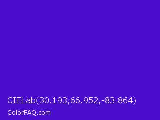 CIELab 30.193,66.952,-83.864 Color is a normal indigo color and the nearest color is Interdimensional Blue #360ccc. Hex code #4b0ecf and RGB value is rgb(75,14,207). In RGB color space, this color is composed of 29% red, 5% green, 81% blue, In CMYK color space, this color is composed of 64% cyan, 93% magenta, 0% yellow , 19% black , In HSL color space, this color has a hue angle of 259° , 87% saturation and 43% lightness.