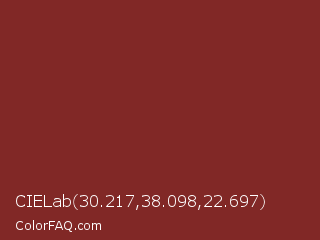 CIELab 30.217,38.098,22.697 Color is a normal red color and the nearest color is Red Robin #80341f. Hex code #812826 and RGB value is rgb(129,40,38). In RGB color space, this color is composed of 51% red, 16% green, 15% blue, In CMYK color space, this color is composed of 0% cyan, 69% magenta, 71% yellow , 49% black , In HSL color space, this color has a hue angle of 1° , 54% saturation and 33% lightness.