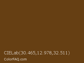 CIELab 30.465,12.978,32.511 Color is a dark orange color and the nearest color is Pullman Brown UPS Brown #644117. Hex code #663f13 and RGB value is rgb(102,63,19). In RGB color space, this color is composed of 40% red, 25% green, 7% blue, In CMYK color space, this color is composed of 0% cyan, 38% magenta, 81% yellow , 60% black , In HSL color space, this color has a hue angle of 32° , 69% saturation and 24% lightness.