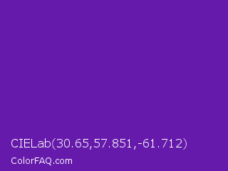 CIELab 30.65,57.851,-61.712 Color is a normal purple color and the nearest color is Grape #6f2da8. Hex code #661aab and RGB value is rgb(102,26,171). In RGB color space, this color is composed of 40% red, 10% green, 67% blue, In CMYK color space, this color is composed of 40% cyan, 85% magenta, 0% yellow , 33% black , In HSL color space, this color has a hue angle of 271° , 74% saturation and 39% lightness.