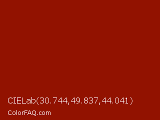 CIELab 30.744,49.837,44.041 Color is a dark red color and the nearest color is Totem Pole #991b07. Hex code #921200 and RGB value is rgb(146,18,0). In RGB color space, this color is composed of 57% red, 7% green, 0% blue, In CMYK color space, this color is composed of 0% cyan, 88% magenta, 100% yellow , 43% black , In HSL color space, this color has a hue angle of 7° , 100% saturation and 29% lightness.