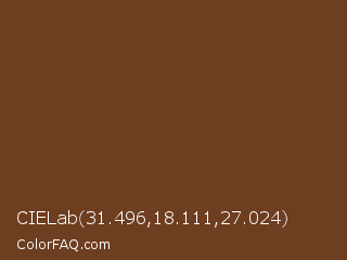 CIELab 31.496,18.111,27.024 Color is a dark orange color and the nearest color is Flattery #6b4423. Hex code #6e3e20 and RGB value is rgb(110,62,32). In RGB color space, this color is composed of 43% red, 24% green, 13% blue, In CMYK color space, this color is composed of 0% cyan, 44% magenta, 71% yellow , 57% black , In HSL color space, this color has a hue angle of 23° , 55% saturation and 28% lightness.