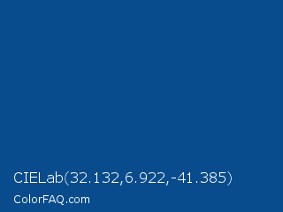CIELab 32.132,6.922,-41.385 Color is a dark blue color and the nearest color is Congress Blue #02478e. Hex code #084c8d and RGB value is rgb(8,76,141). In RGB color space, this color is composed of 3% red, 30% green, 55% blue, In CMYK color space, this color is composed of 94% cyan, 46% magenta, 0% yellow , 45% black , In HSL color space, this color has a hue angle of 209° , 89% saturation and 29% lightness.