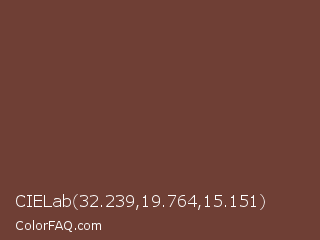 CIELab 32.239,19.764,15.151 Color is a normal red color and the nearest color is Spice #6a442e. Hex code #6f3f35 and RGB value is rgb(111,63,53). In RGB color space, this color is composed of 44% red, 25% green, 21% blue, In CMYK color space, this color is composed of 0% cyan, 43% magenta, 52% yellow , 56% black , In HSL color space, this color has a hue angle of 10° , 35% saturation and 32% lightness.