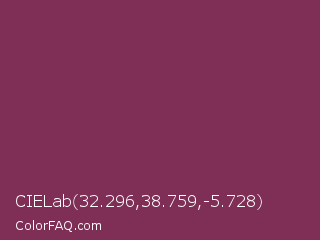 CIELab 32.296,38.759,-5.728 Color is a normal rose color and the nearest color is Camelot #893456. Hex code #7f2f56 and RGB value is rgb(127,47,86). In RGB color space, this color is composed of 50% red, 18% green, 34% blue, In CMYK color space, this color is composed of 0% cyan, 63% magenta, 32% yellow , 50% black , In HSL color space, this color has a hue angle of 331° , 46% saturation and 34% lightness.