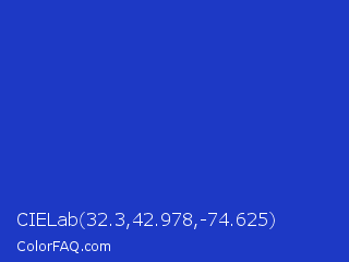 CIELab 32.3,42.978,-74.625 Color is a normal blue color and the nearest color is Persian Blue #1c39bb. Hex code #1d39c5 and RGB value is rgb(29,57,197). In RGB color space, this color is composed of 11% red, 22% green, 77% blue, In CMYK color space, this color is composed of 85% cyan, 71% magenta, 0% yellow , 23% black , In HSL color space, this color has a hue angle of 230° , 74% saturation and 44% lightness.