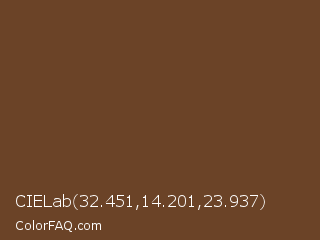 CIELab 32.451,14.201,23.937 Color is a dark orange color and the nearest color is Flattery #6b4423. Hex code #6b4327 and RGB value is rgb(107,67,39). In RGB color space, this color is composed of 42% red, 26% green, 15% blue, In CMYK color space, this color is composed of 0% cyan, 37% magenta, 64% yellow , 58% black , In HSL color space, this color has a hue angle of 25° , 47% saturation and 29% lightness.