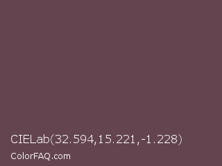 CIELab 32.594,15.221,-1.228 Color is a normal rose color and the nearest color is Deep Tuscan Red #66424d. Hex code #63444f and RGB value is rgb(99,68,79). In RGB color space, this color is composed of 39% red, 27% green, 31% blue, In CMYK color space, this color is composed of 0% cyan, 31% magenta, 20% yellow , 61% black , In HSL color space, this color has a hue angle of 339° , 19% saturation and 33% lightness.