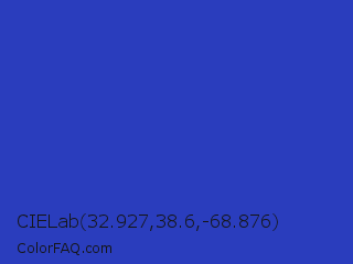 CIELab 32.927,38.6,-68.876 Color is a normal blue color and the nearest color is Governor Bay #2f3cb3. Hex code #2a3dbd and RGB value is rgb(42,61,189). In RGB color space, this color is composed of 16% red, 24% green, 74% blue, In CMYK color space, this color is composed of 78% cyan, 68% magenta, 0% yellow , 26% black , In HSL color space, this color has a hue angle of 232° , 64% saturation and 45% lightness.