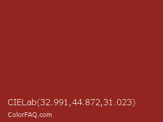 CIELab 32.991,44.872,31.023 Color is a normal red color and the nearest color is Vivid Auburn #922724. Hex code #92251f and RGB value is rgb(146,37,31). In RGB color space, this color is composed of 57% red, 15% green, 12% blue, In CMYK color space, this color is composed of 0% cyan, 75% magenta, 79% yellow , 43% black , In HSL color space, this color has a hue angle of 3° , 65% saturation and 35% lightness.