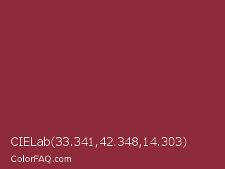 CIELab 33.341,42.348,14.303 Color is a normal red color and the nearest color is Solid Pink #893843. Hex code #8d2b3a and RGB value is rgb(141,43,58). In RGB color space, this color is composed of 55% red, 17% green, 23% blue, In CMYK color space, this color is composed of 0% cyan, 70% magenta, 59% yellow , 45% black , In HSL color space, this color has a hue angle of 351° , 53% saturation and 36% lightness.