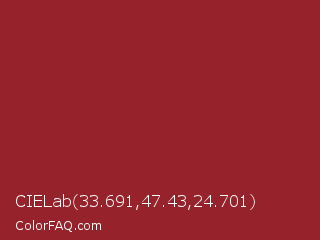 CIELab 33.691,47.43,24.701 Color is a normal red color and the nearest color is Vivid Auburn #922724. Hex code #96232b and RGB value is rgb(150,35,43). In RGB color space, this color is composed of 59% red, 14% green, 17% blue, In CMYK color space, this color is composed of 0% cyan, 77% magenta, 71% yellow , 41% black , In HSL color space, this color has a hue angle of 356° , 62% saturation and 36% lightness.